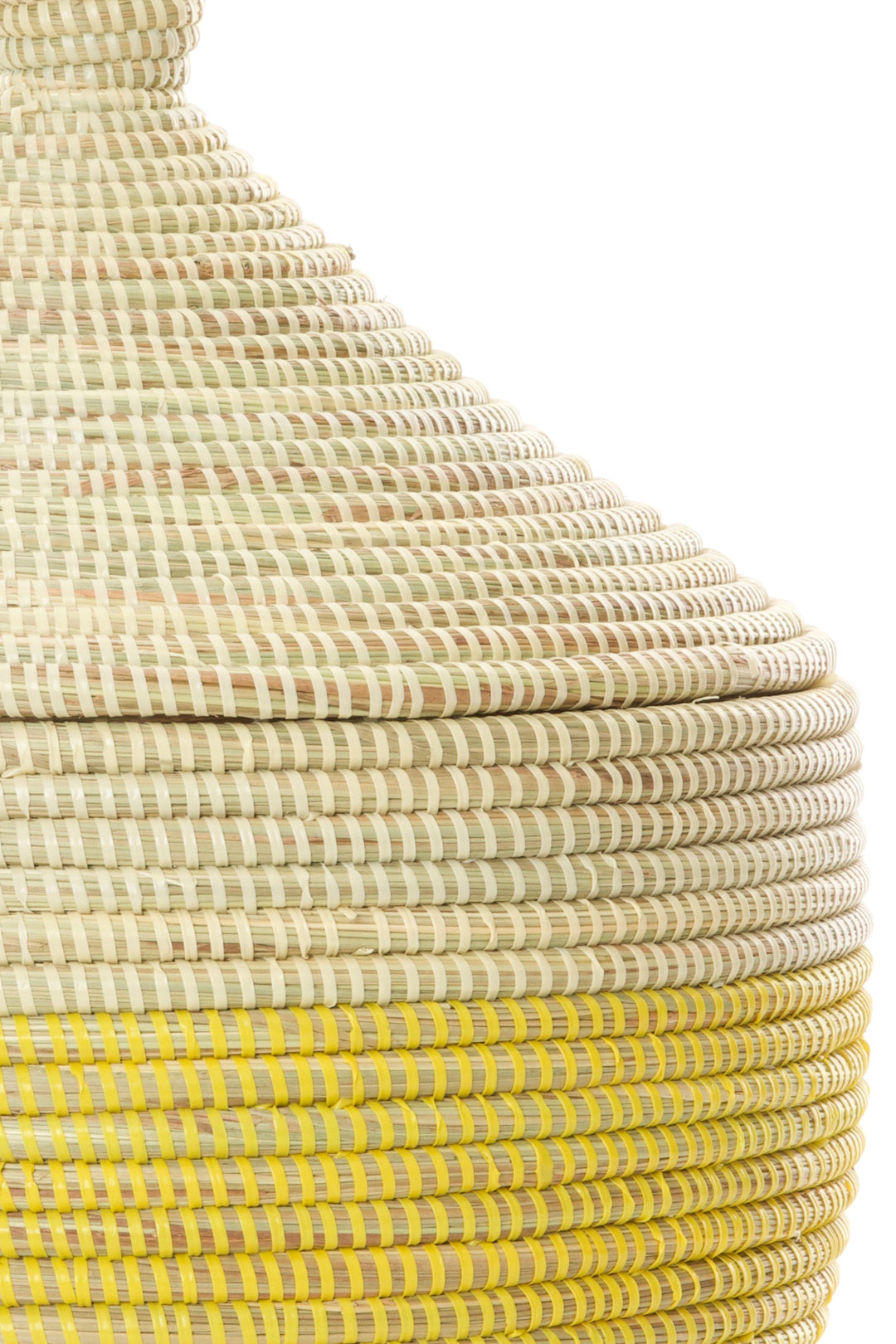 This beautiful basket is handcrafted by rural Wolof women in Senegal from cattail stalks and strips of salvaged plastic. With a snug fitting lid, our warming baskets are a perfect way to present baked goods to loved ones, or to create a memorable gift basket of your own design.