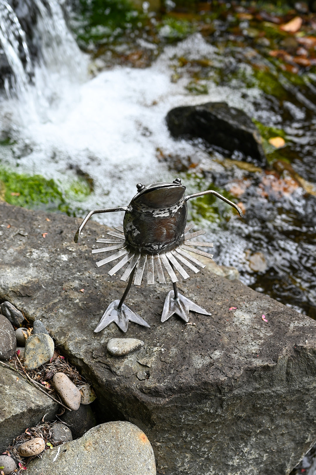 Metal Dancing Frog Sculpture