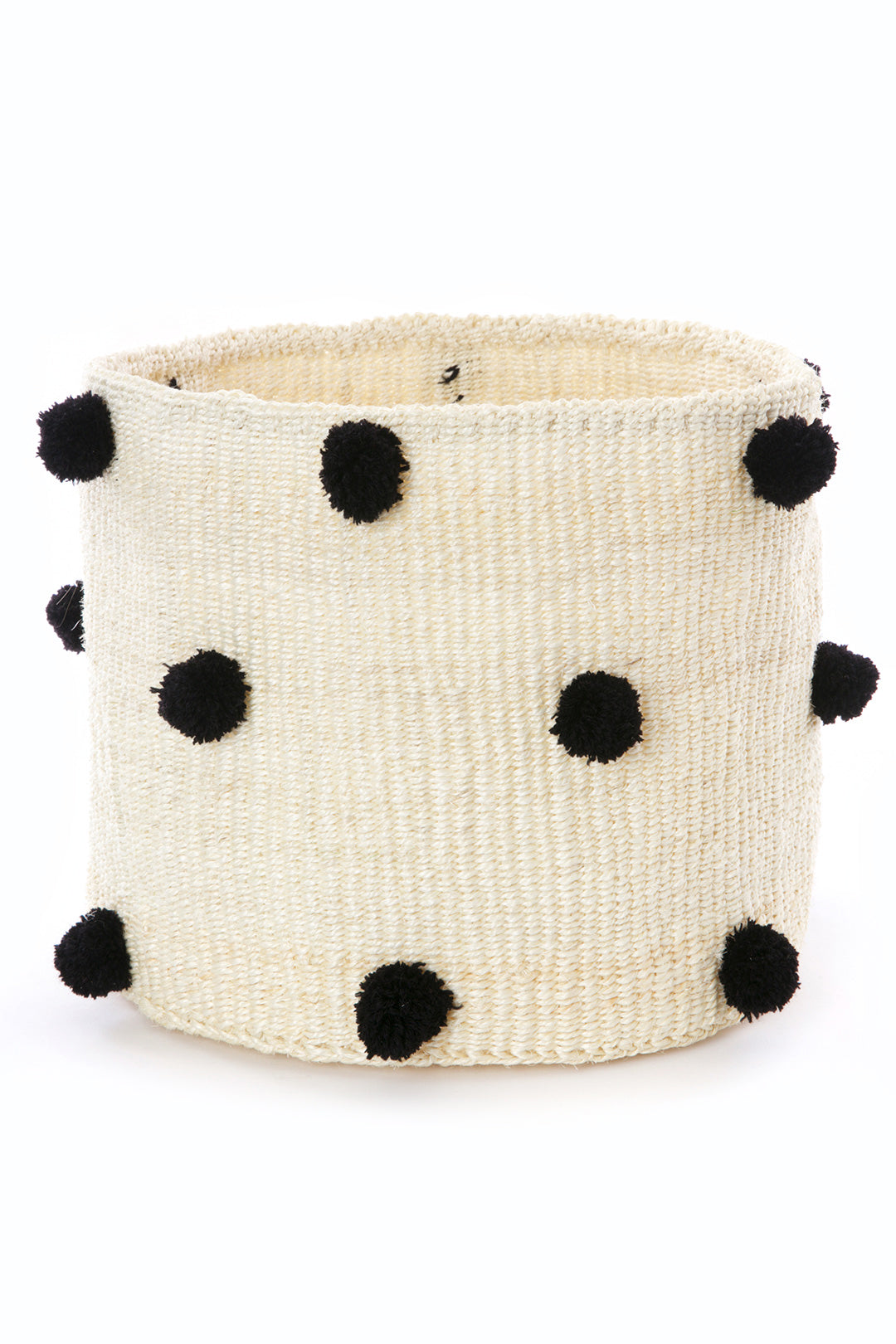 Using strands of natural sisal and finishing with bold black pom poms, weavers in rural Kenya craft these eye-catching baskets that can be used for chic storage in any room of the home. Sisal is a natural fiber extracted from an agave plant, so the baskets are coveted for their durability and ability to be re-shaped.