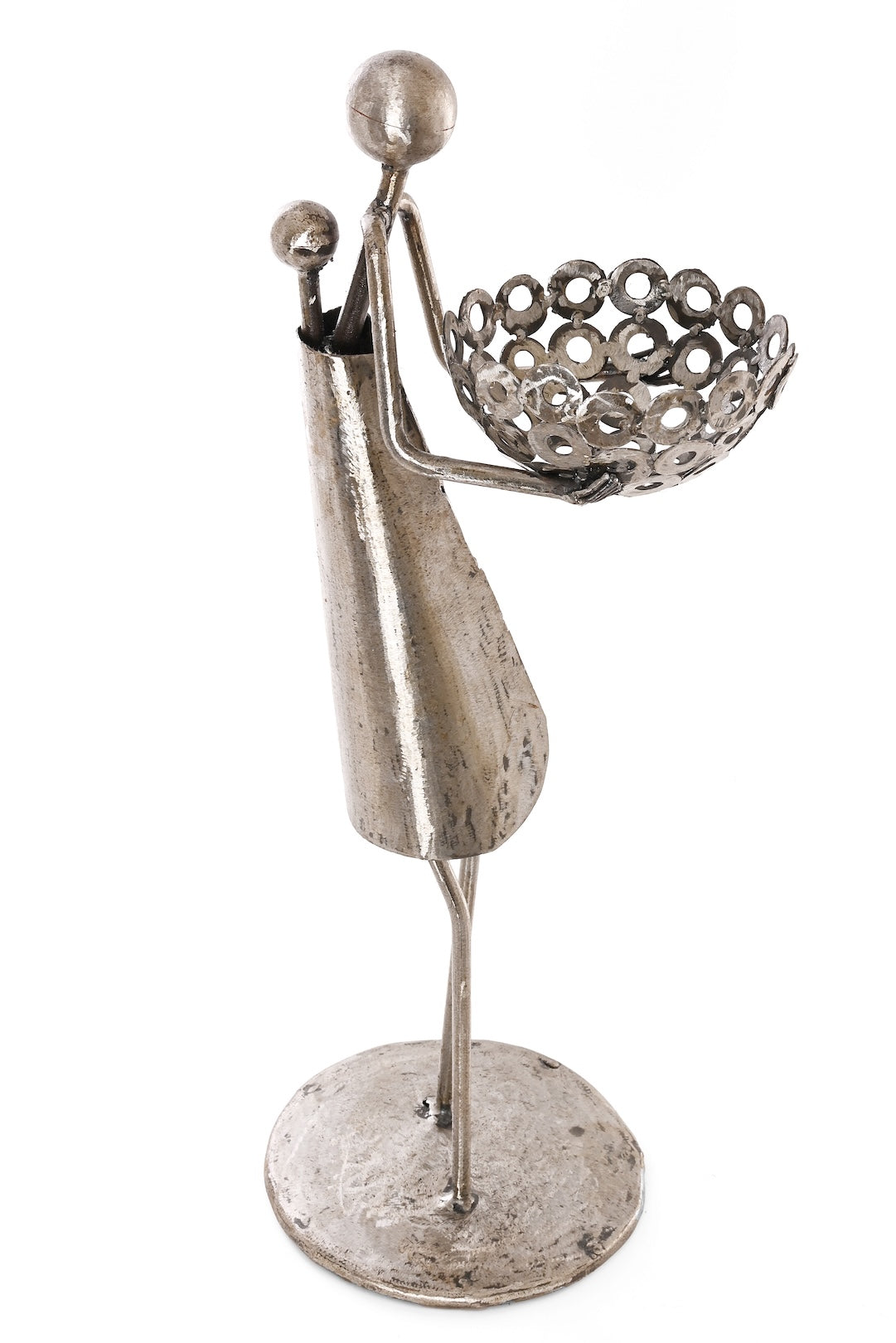 Recycled Metal Mama with Baby and Bowl Sculpture