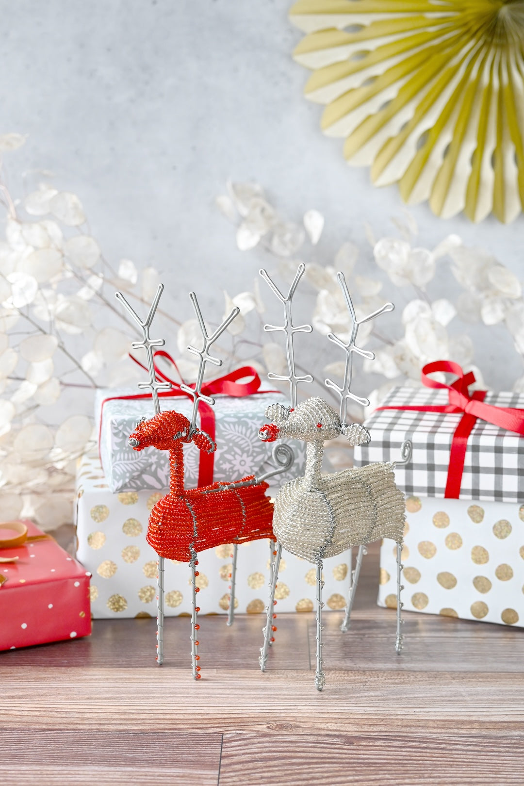 Sparkling beads and silver wire blend beautifully in this handcrafted holiday reindeer sculpture from Kenya. Artisans showcase their beading skills through meticulous attention to detail, creating artful adornments imbued with holiday spirit.