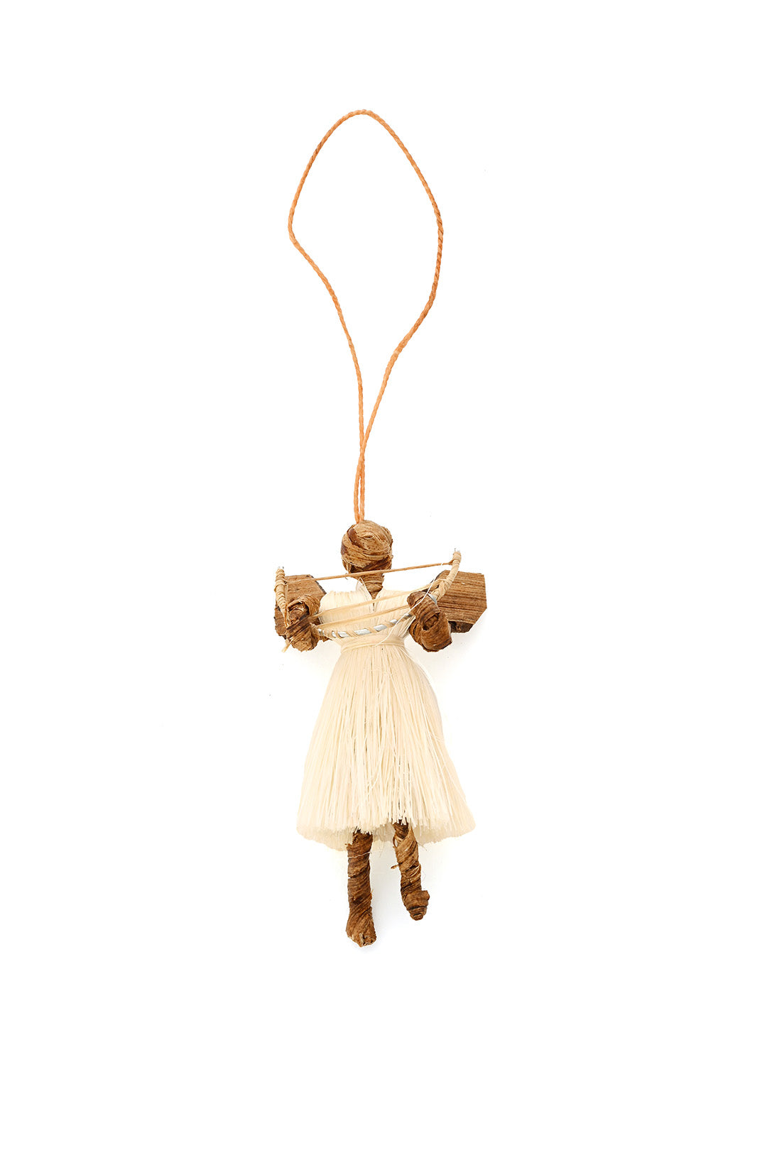 Kenyan artisan Noah crafts these sweet, tiny angel ornaments from sisal and banana fiber. Each angel holds assorted decorations, such as a star, a heart, a horn, or a harp. Using natural materials allows artisans to earn income with no stress on their environment, and the rustic nature of these diminutive Christmas ornaments adds a natural touch to the tree.