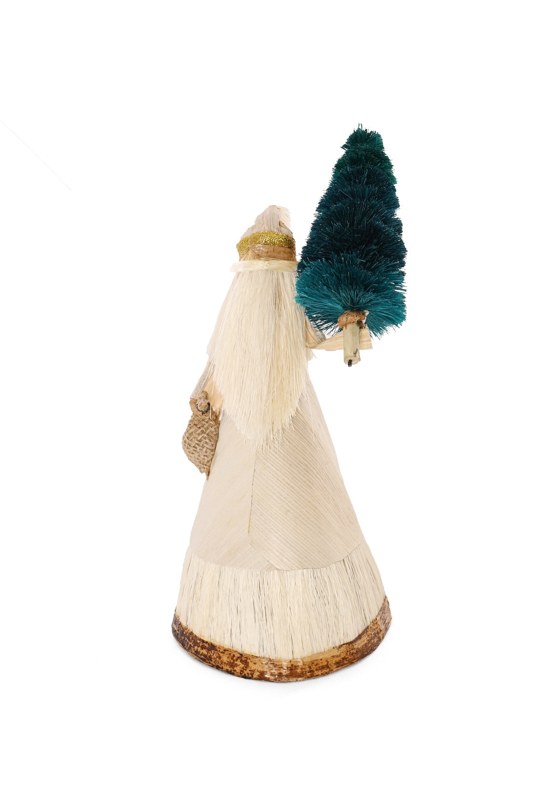 Kenyan artisans craft these distinctive Santa holiday sculptures from natural banana fiber, and sisal. Modeled after the vintage Belsnickel, each Santa carries a pouch and a sisal tree. Using natural materials allows artisans to earn income with no stress on their environment, while the rustic, handcrafted style brings a warm, natural touch to holiday decor.