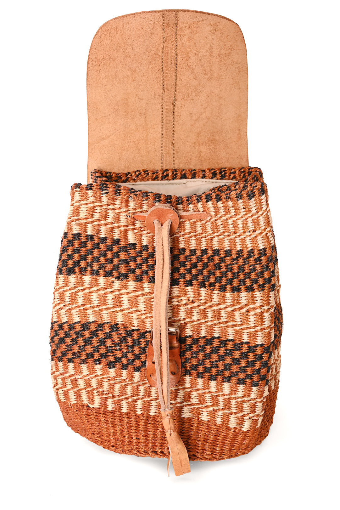 Kenyan artisans put their expert weaving skills to work to create this stunning backpack, handwoven from durable sisal in softly muted, earthy tones. Each piece is finished with a cinched leather top and an embossed leather flap that buckles securely over the opening for a beautiful and functional finish. Woven from long strips of fiber extracted from the hardy sisal plant, every backpack is fully lined and features adjustable leather straps that make it comfortable to carry on any adventure.
