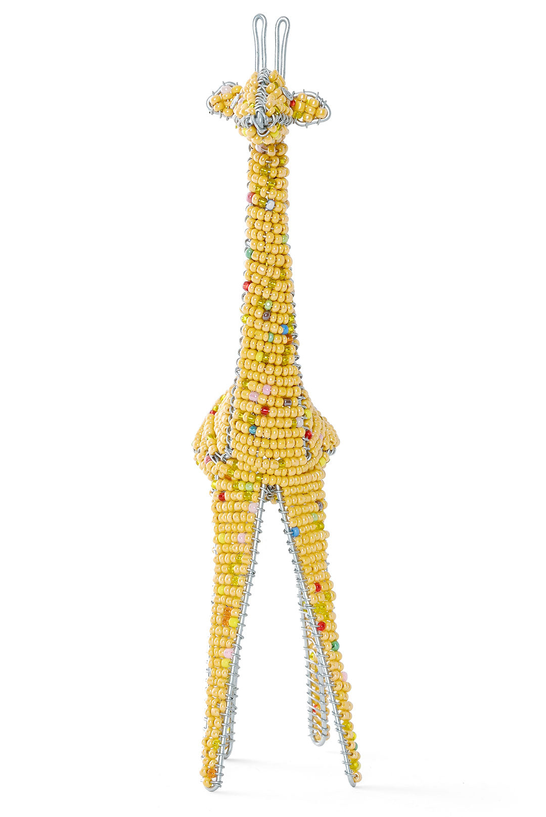 Kenyan artisans show off their beadwork skills in this lovely soft yellow giraffe sculpture. Handmade from thousands of glass seed beads strung on artfully twisted wire, this unique piece of folk art is a must-have for safari animal enthusiasts.