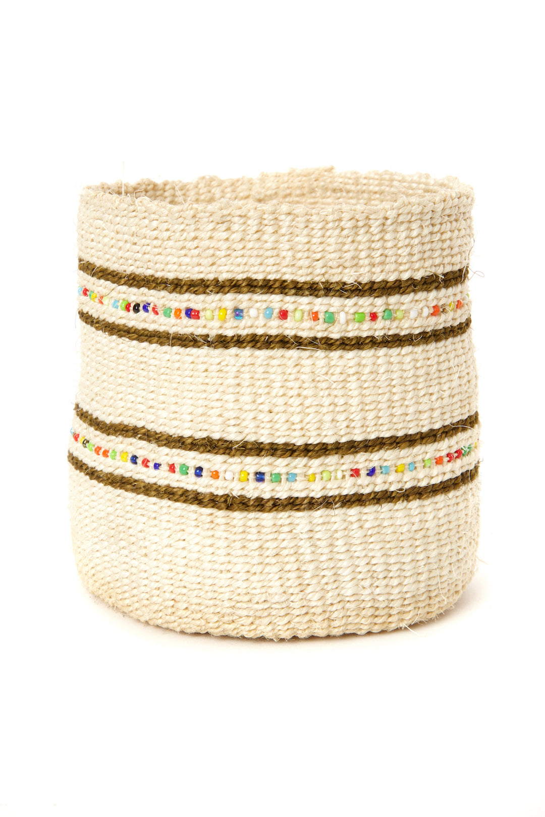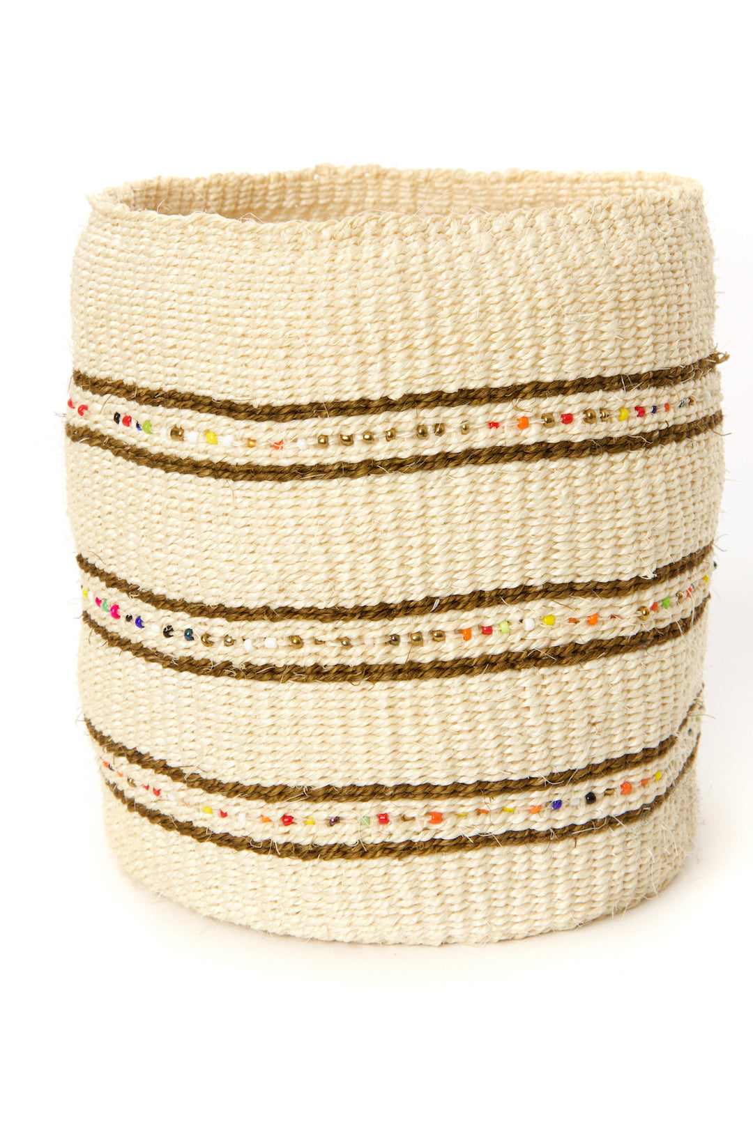 These finely woven storage baskets are handcrafted in Kenya from the fiber of the agave sisalana plant. More refined than our larger sisal baskets, these three little nesting containers are dressed up with colorful beads and can be used to store small items throughout the home.