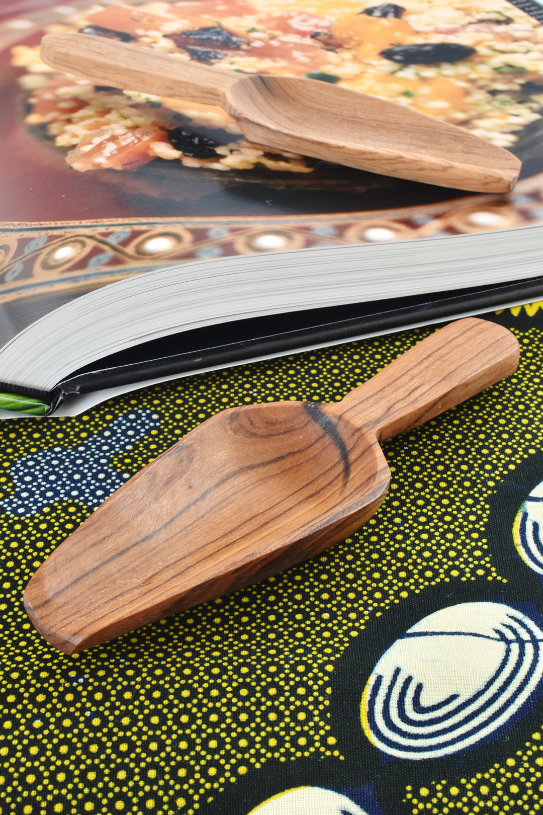 Kenyan artisans hand carve this perfect little bin scoop from wild olive wood.